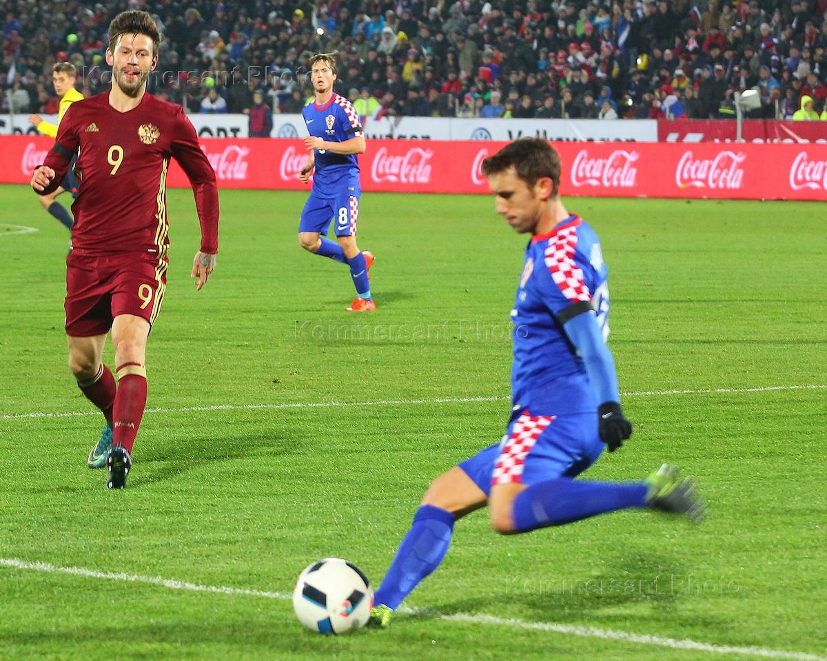 Товарищеский матч по футболу национальных сборных России и Хорватии на стадионе "Олимп-2".
