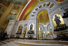 Жанровая фотография. Верующие в кафедральном соборе Христа Спасителя во время службы Патриарха…