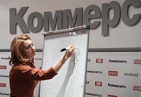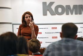 Психолог, лектор Лена Фейгин во время выступления с лекцией в Академии журналистики "Коммерсантъ".
