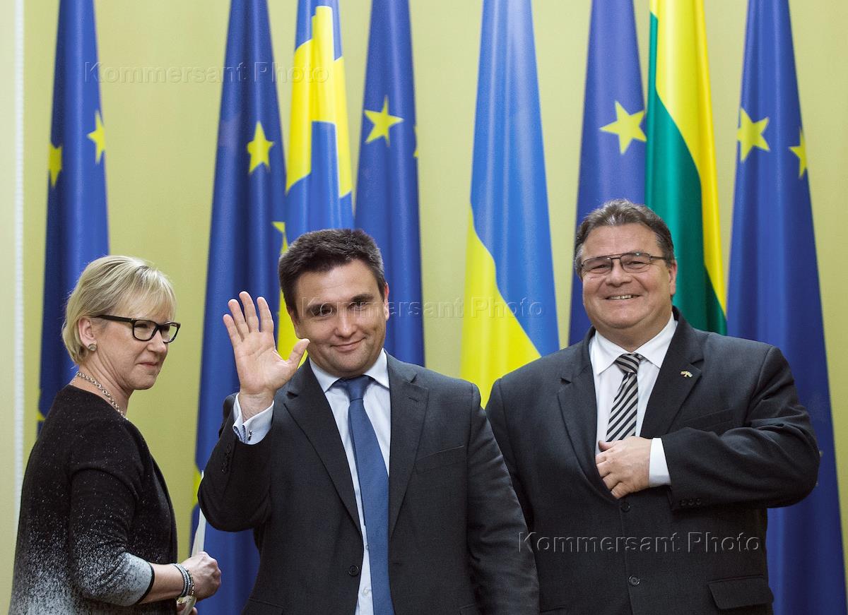 Политика Министр иностранных дел Украины Павел Климкин во время совместной пресс-конференции с министрами иностранных дел Швеции и Литвы Маргот Вальстрем и Линасом Линкявичюсом.