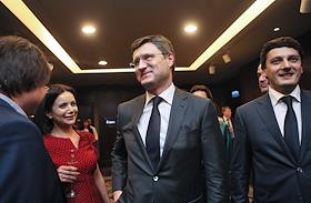 Министр энергетики России Александр Новак (слева) на церемонии вручении премии "Медиа ТЭК" в…