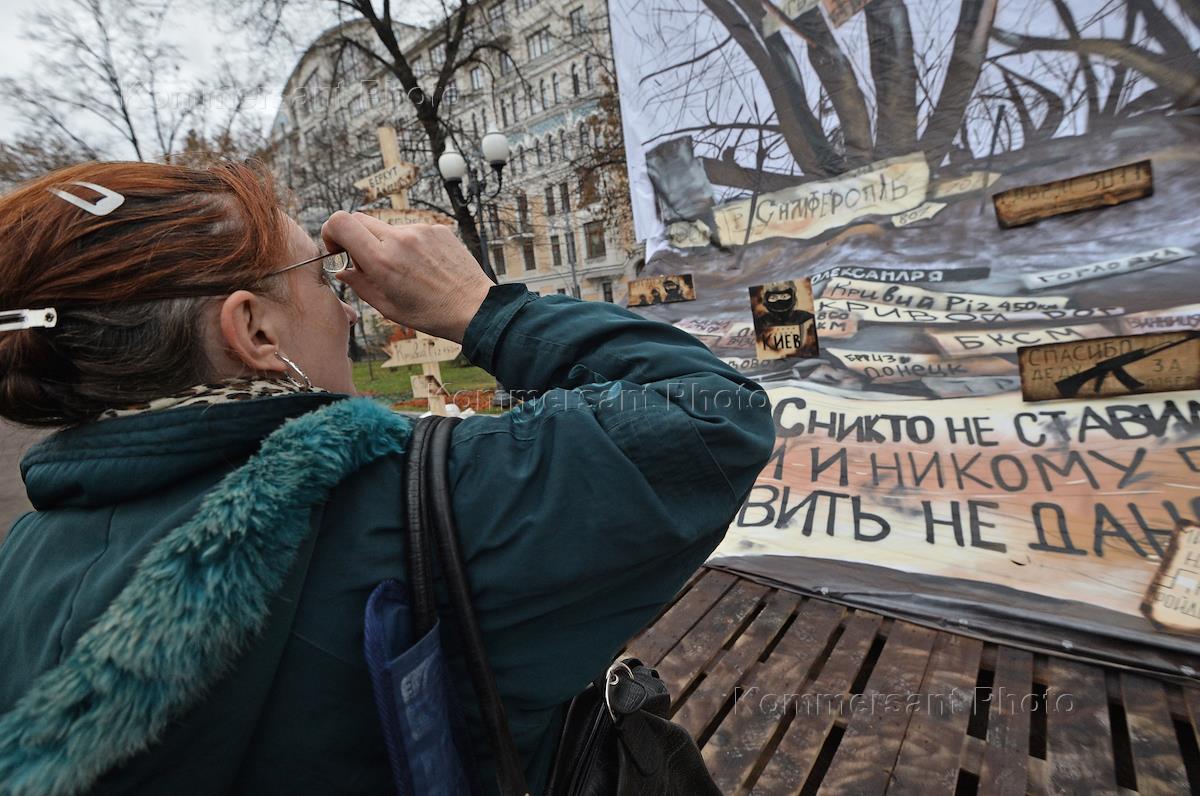 Участник акции движения "Антимайдан", посвященной очередной годовщине первых столкновений участников…