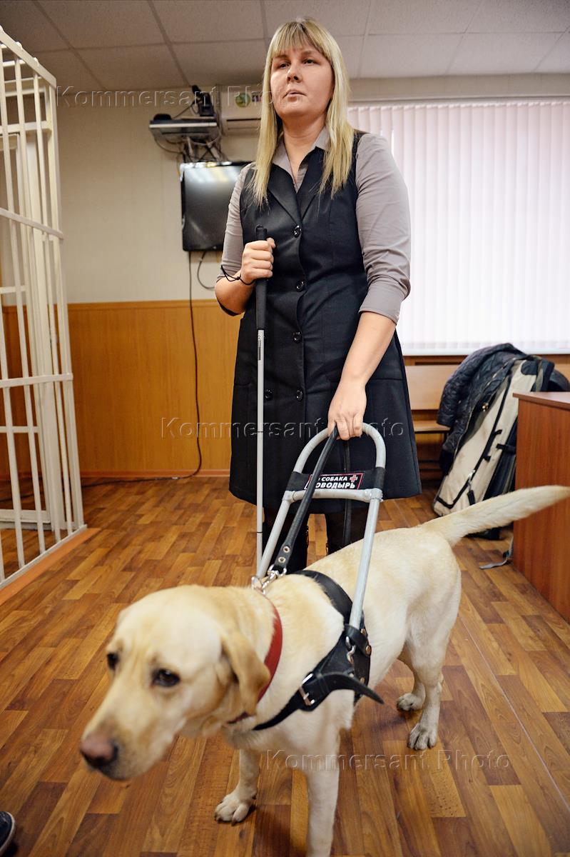 Инвалид по зрению Юлия Дьякова с собакой-поводырем лабрадором Дианой во время оглашения приговора…
