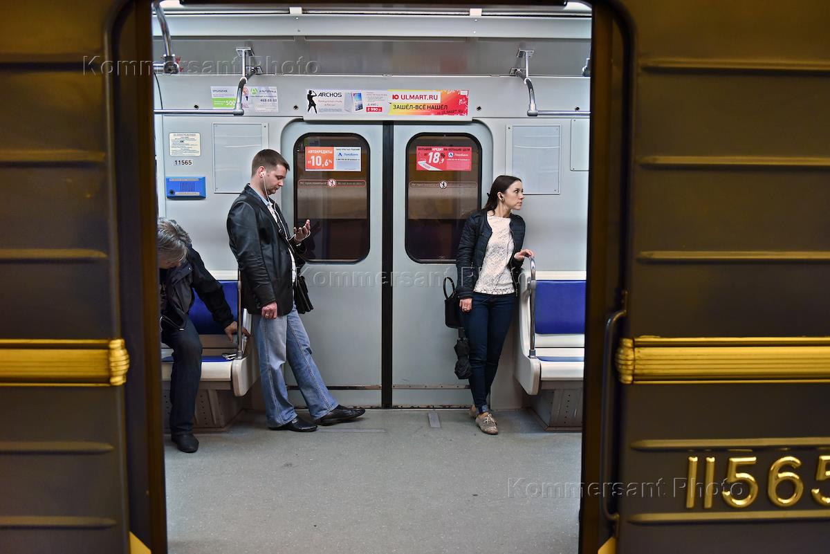 Жанровая фотография. Пассажиры в вагоне поезда метро. Общественный транспорт