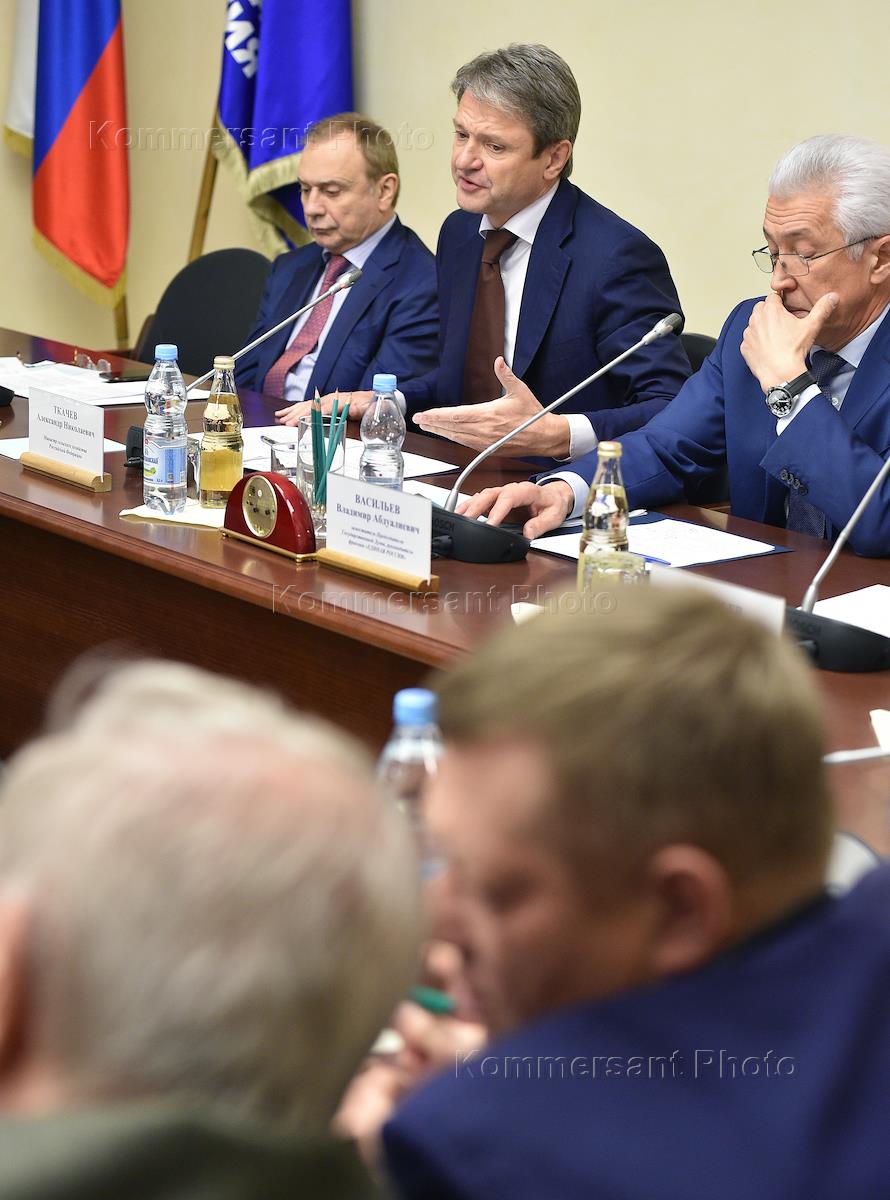 Встреча депутатов Государственной думы (ГД) России от фракции "Единая Россия". Слева направо: первый…