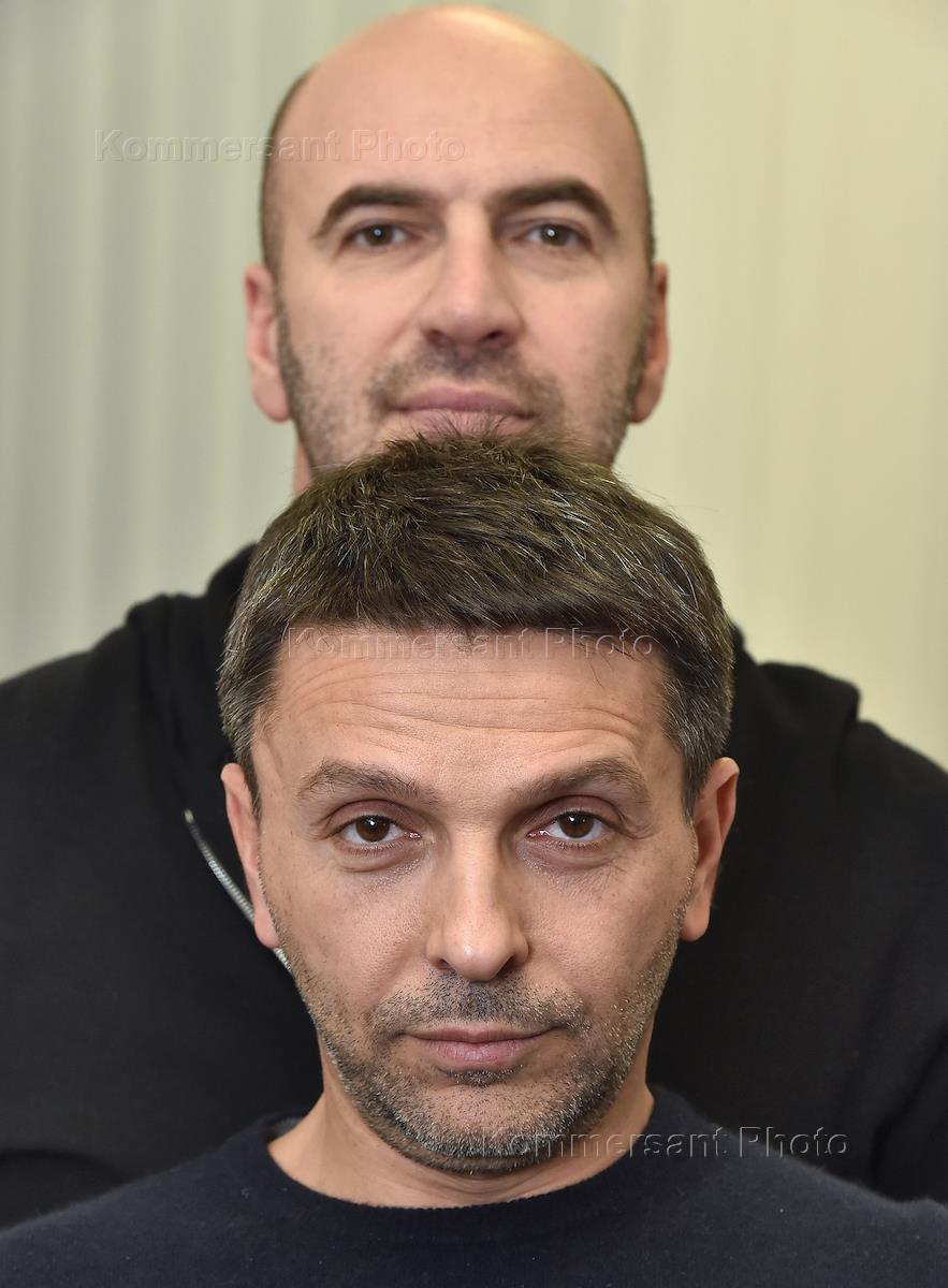 Участники комического театра "Квартет И" Ростислав Хаит (вверху) и Леонид Барац (внизу) во время…