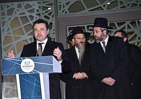 Губернатор Московской области Андрей Воробьев (в центре) на церемонии открытия нового еврейского…