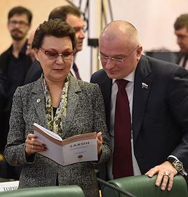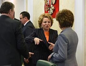 Председатель Совета Федерации (СФ) России Валентина Матвиенко (справа) и ее заместитель Галина…