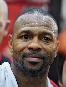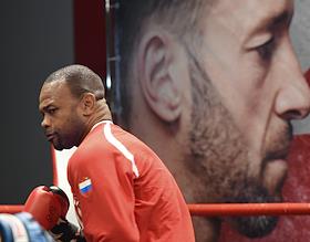 Российский боксер Рой Джонс-младший (слева) во время тренировки перед предстоящим боем с бывшим…