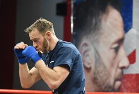 Бывший чемпион мира по боксу Энцо Маккаринелли во время тренировки перед предстоящим боем с боксером…