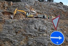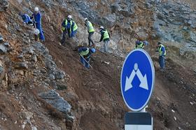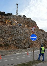 Виды Фороса. Рабочие во время строительства автомобильной дороги в горах.