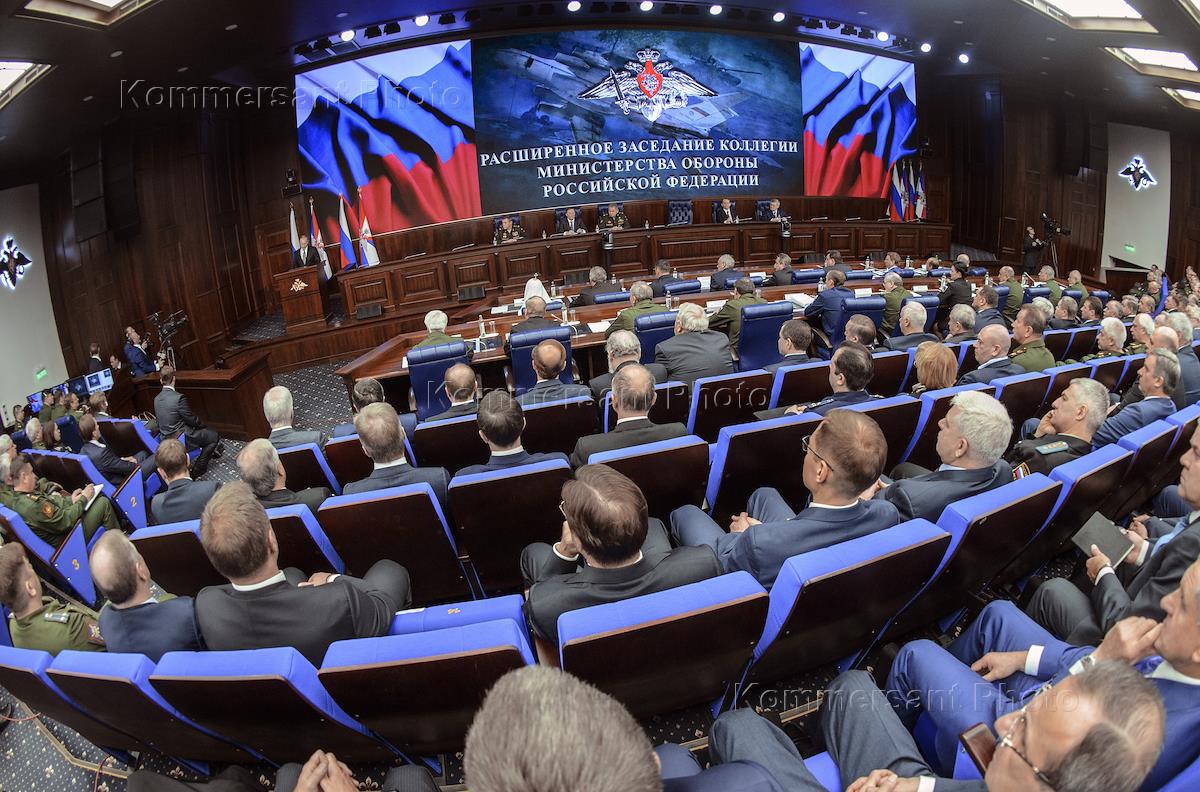Ежегодная расширенная коллегия Министерства обороны РФ с участием президента России Владимира Путина.