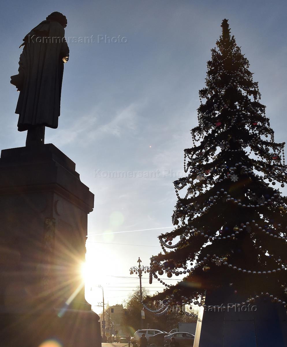 Жанровая фотография. Новогодняя елка на Пушкинской площади. Памятник А.С. Пушкину.