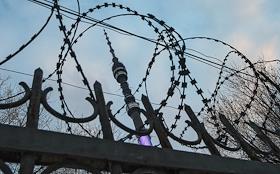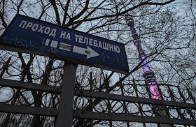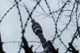 Останкинская телебашня за колючей проволокой. Жанровая съемка.