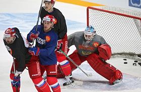 Открытая тренировка национальной сборной по хоккею в предверии старта Кубка Первого канала в "Ледовом дворце" в СКР "Парк Легенд".