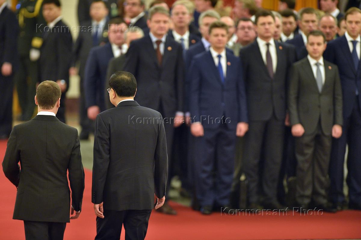 Политика Председатель правительства РФ Дмитрий Медведевво время церемонии официальной встречи с премьером Государственного совета КНР Ли Кэцяном в Пекине.