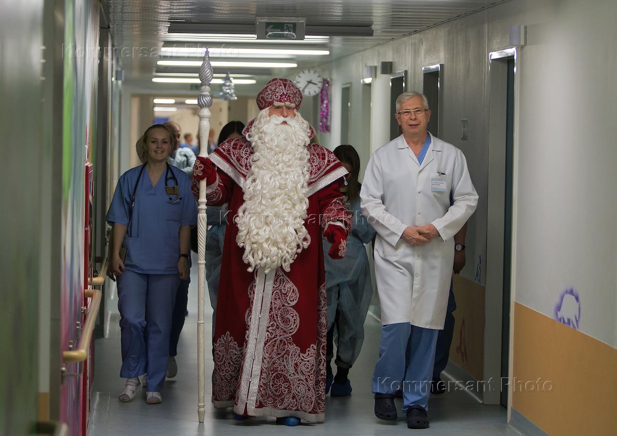 Дед Мороз из Великого Устюга во время посещения детей в Калининградском кардиоцентре.