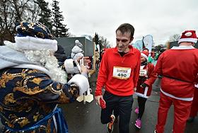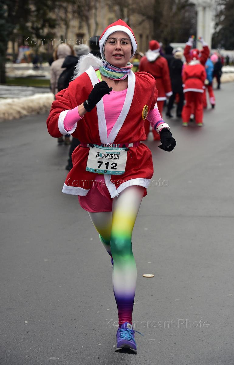 Благотворительный забег Дедов Морозов Happy Run прошел на территории ВДНХ. Участник забега на старте.