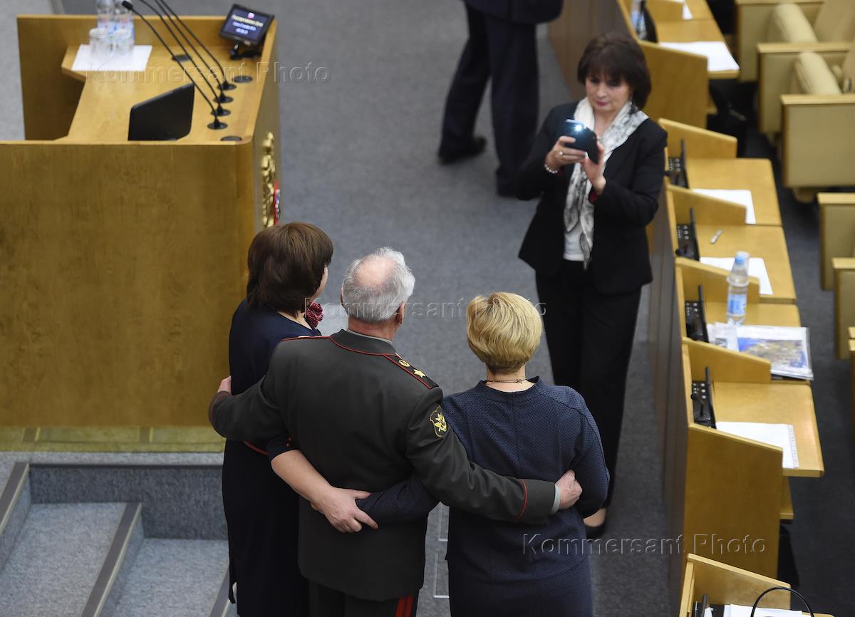 Член комитета Государственной думы России по бюджету и налогам Вера Ганзя (в центре) на пленарном…