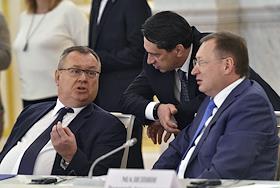 Помощник Президента России Андрей Белоусов (слева) и руководитель Администрации Президента…