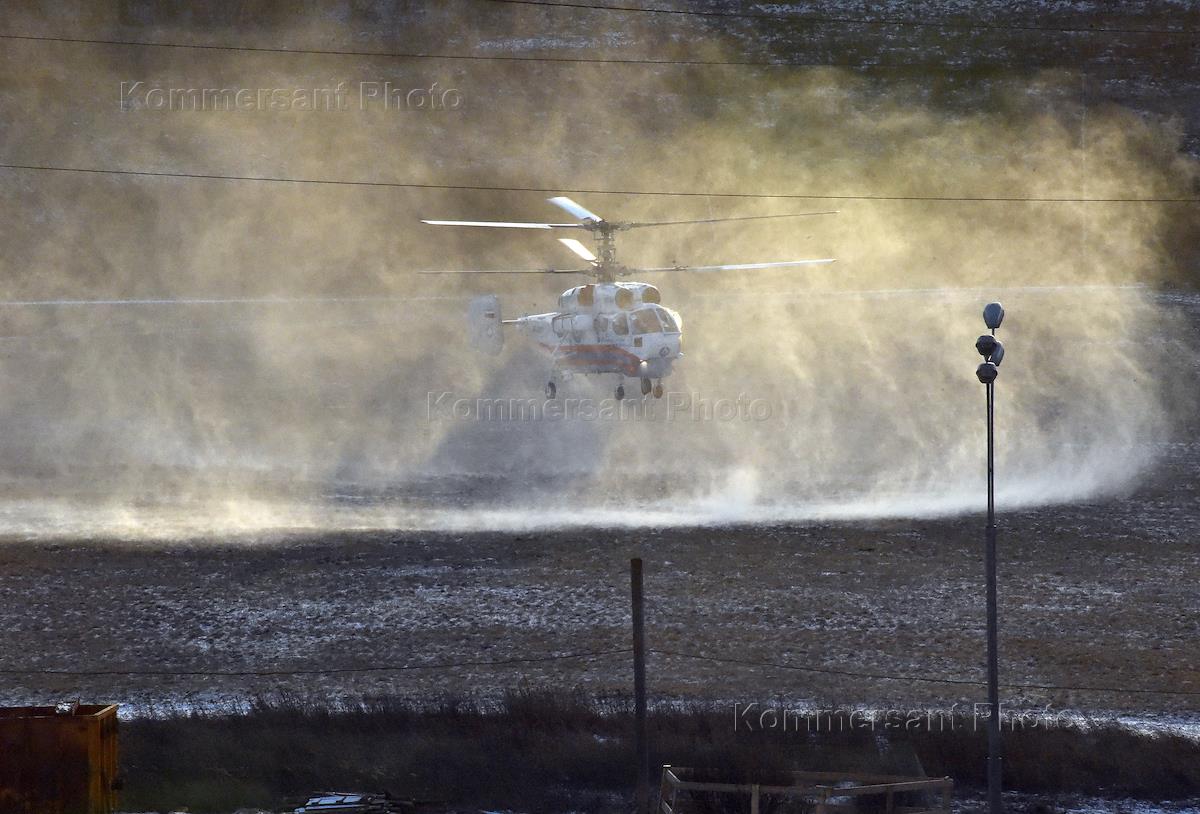 Жанровая фотография. Посадка вертолета на поле.