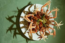 Блюдо из спаржи и лобстеров в ресторане "Итальянец".