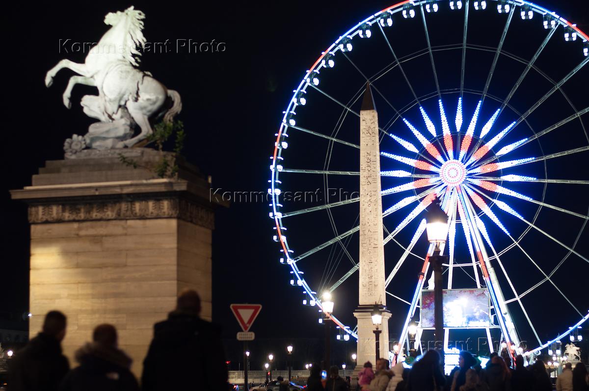 Виды Парижа. Площадь Согласия. Рождественская иллюминация в городе.