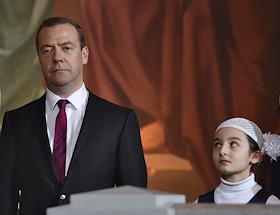 Председатель правительства России Дмитрий Медведев на праздничном Рождественском богослужении в…