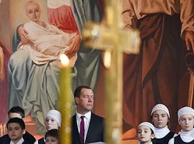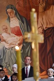 Председатель правительства России Дмитрий Медведев на праздничном Рождественском богослужении в…