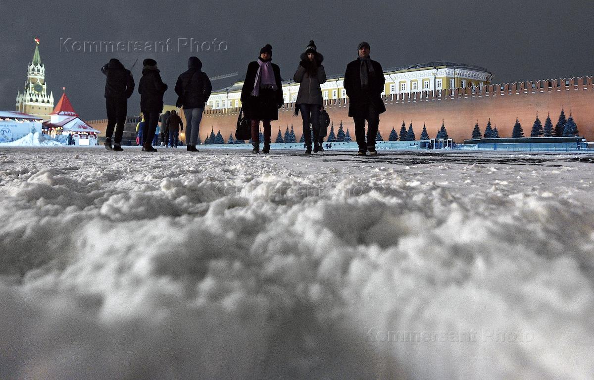 Жанровая фотография. Снегопад в Москве. Отдыхающие на Красной площади.