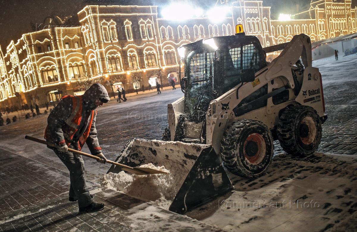 Жанровая фотография. Снегопад в Москве. Уборка снега на Красной площади.