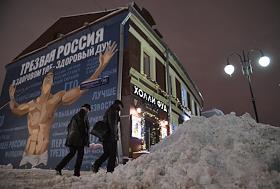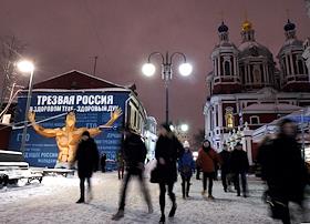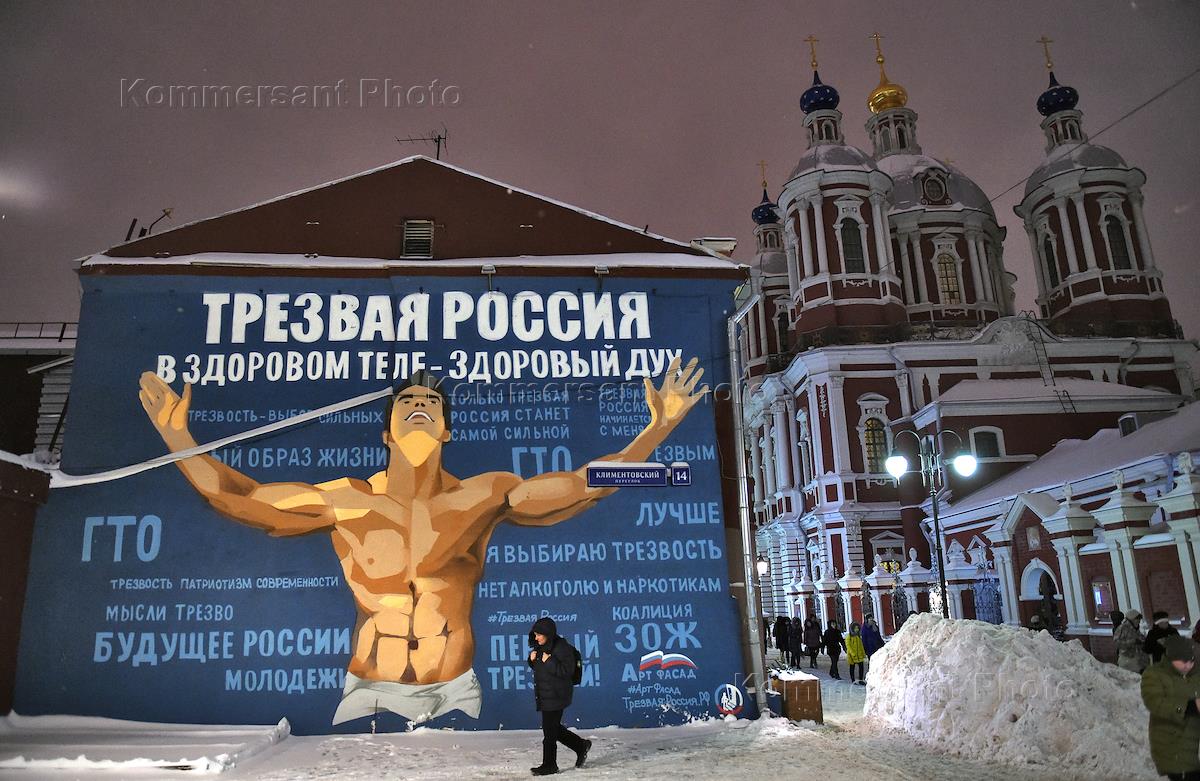 Виды Москвы. Климентовский переулок. Граффити на торце здания "Трезвая Россия. В здоровом теле -…