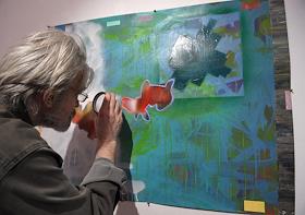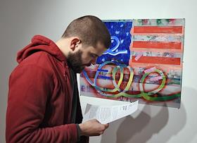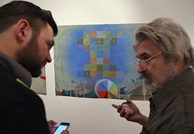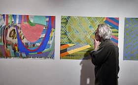 Посетитель на выставке художника Романа Минаева "See More" в галерее "Крокин".
