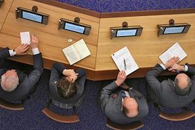 Жанровая фотография. Участники расширенного аппаратного совещания в мэрии города Новосибирска.