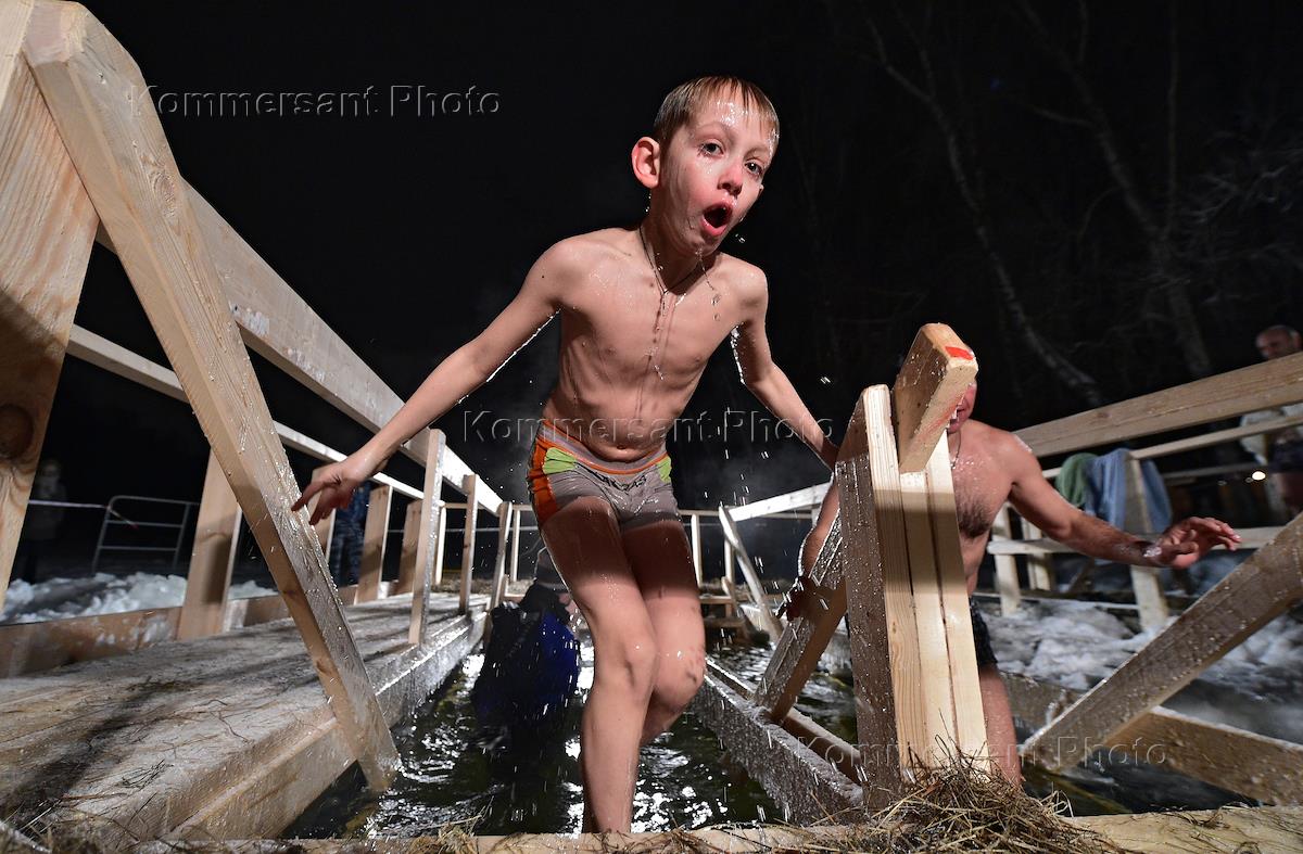 Крещенские купания в проруби во время праздника Крещения Господня в зоне отдыха "Тропарево".