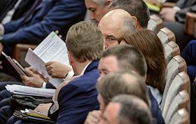 Министр финансов России Антон Силуанов (в центре) на пленарном заседании Всероссийского…