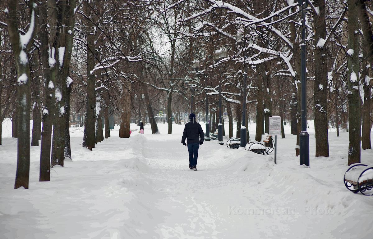 Жанровая фотография. Заснеженная аллея в "Афганском" парке у станции метро "Перово".
