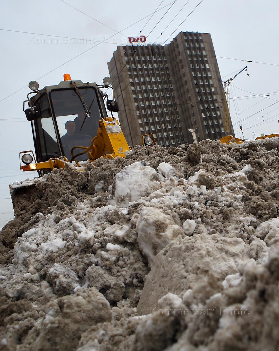 Жанровая фотография. Уборка снега на улицах Москвы.