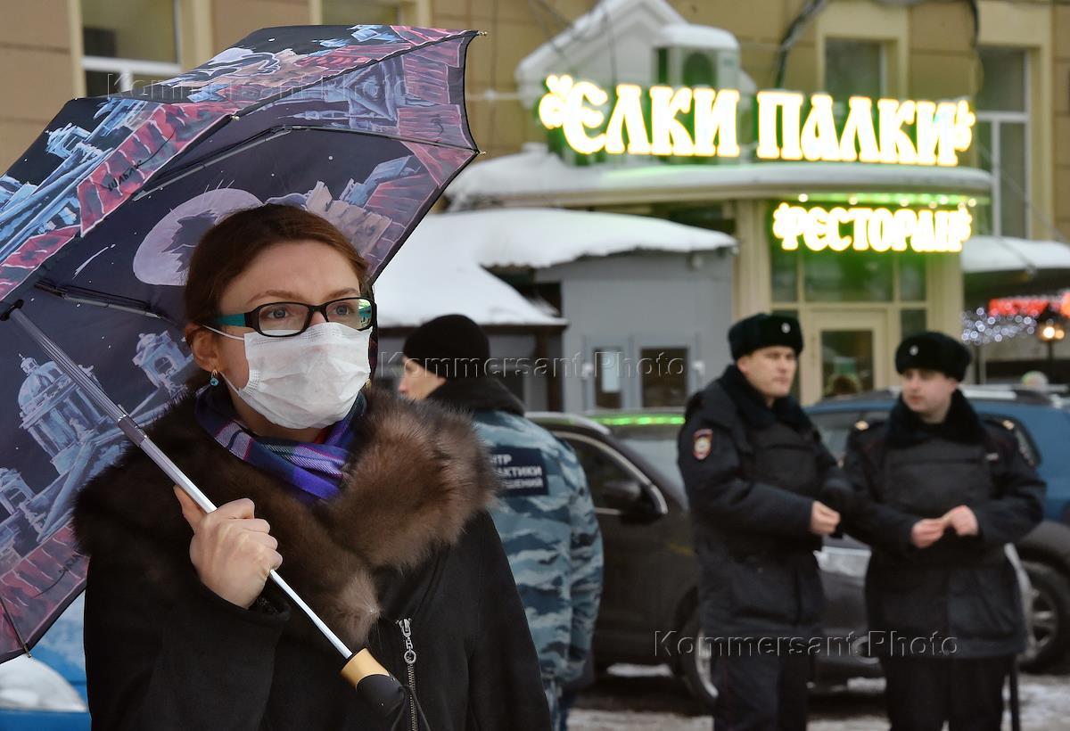 Жанровая фотография. Трактир "Елки-палки" на площади Тверской заставы. Девушка в медицинской маске…