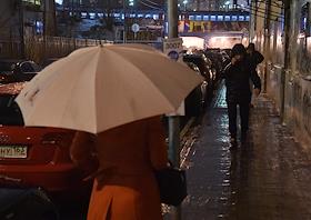 Жанровая фотография. Погода в Москве. Лужи на дороге под мостом.