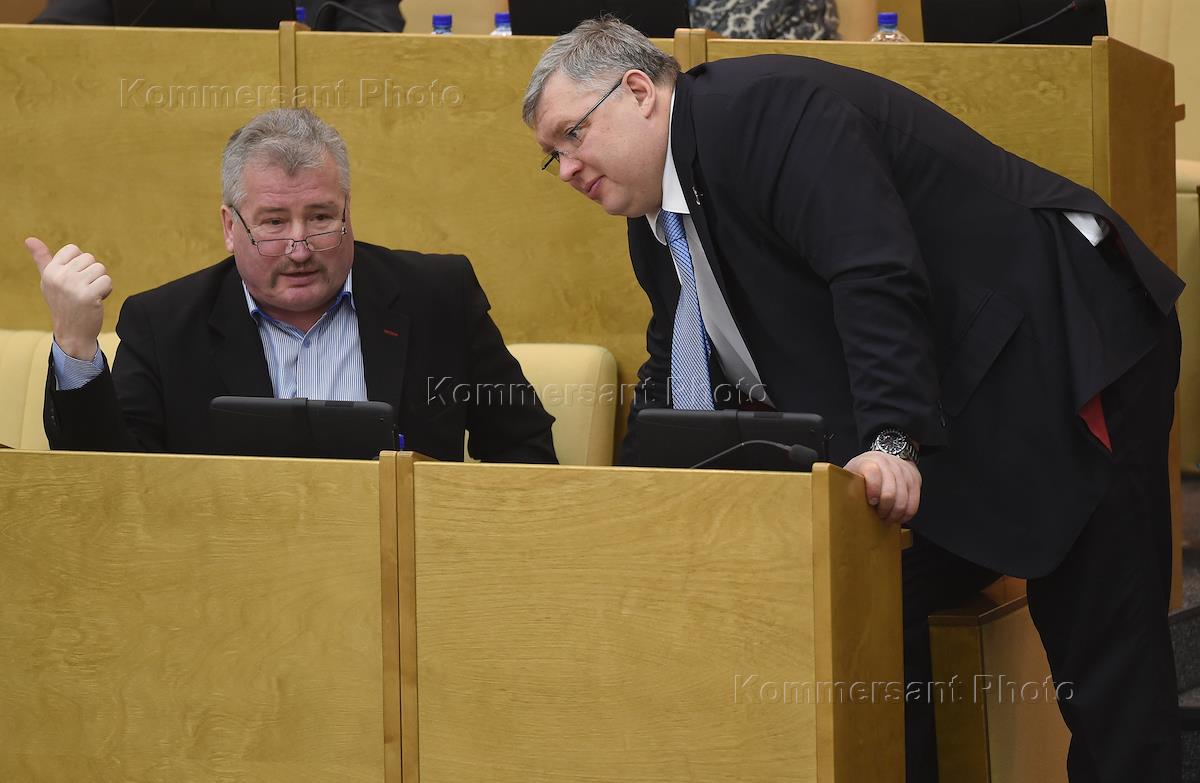 Председатель комитета Государственной думы (ГД) России по бюджету и налогам Андрей Макаров (слева) и…
