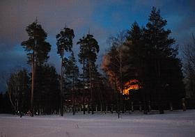 Пожар в цехе по производству мебели и картона на территории бывшей Ситцепечатной фабрики.
