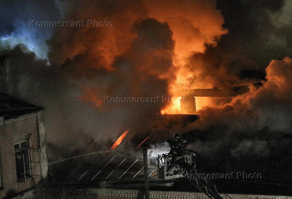 Сотрудники пожарно-спасательных подразделений МЧС во время ликвидации пожара в швейном цеху по…