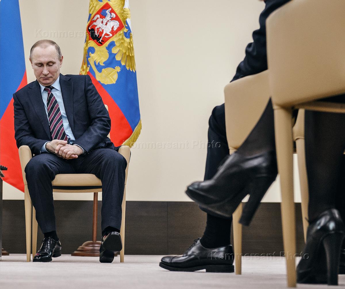 Совещание с президентом России Владимиром Путиным в Ново-Огарево. Президент России Владимир Путин во…