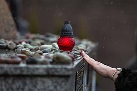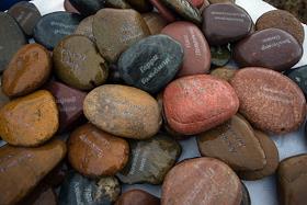 Марш памяти жертв Холокоста "Марш жизни" в поселке Янтарный. Камни с именами жертв.