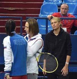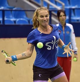 Тренировка женской сборной команды России по теннису перед выступлением в четвертьфинальном матче…