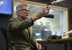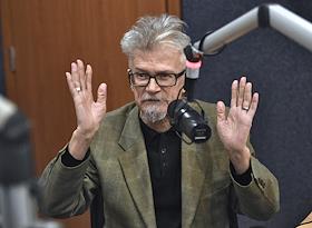 Писатель Эдуард Лимонов во время интервью на радиостанции "Коммерсантъ FM".