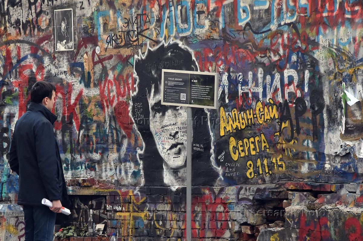 Виды Москвы. Улица Старый Арбат. Стена памяти музыканту Виктору Цою.