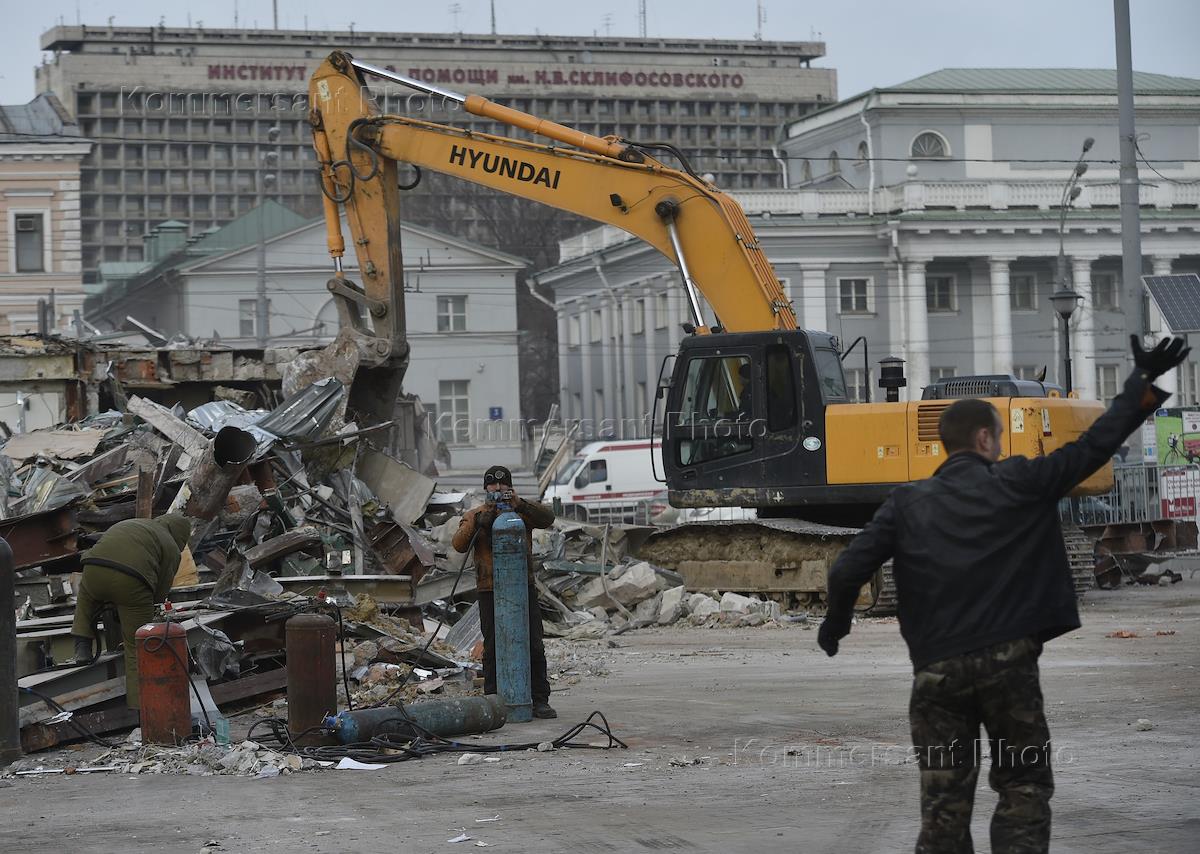 Снос торговых павильонов у станции метро "Кропоткинская".