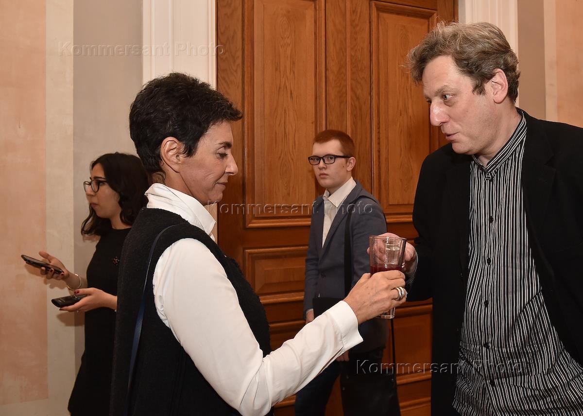Кинокритик, корреспондент корпункта ИД "Коммерсантъ" Михаил Трофименков (справа) на открытии…